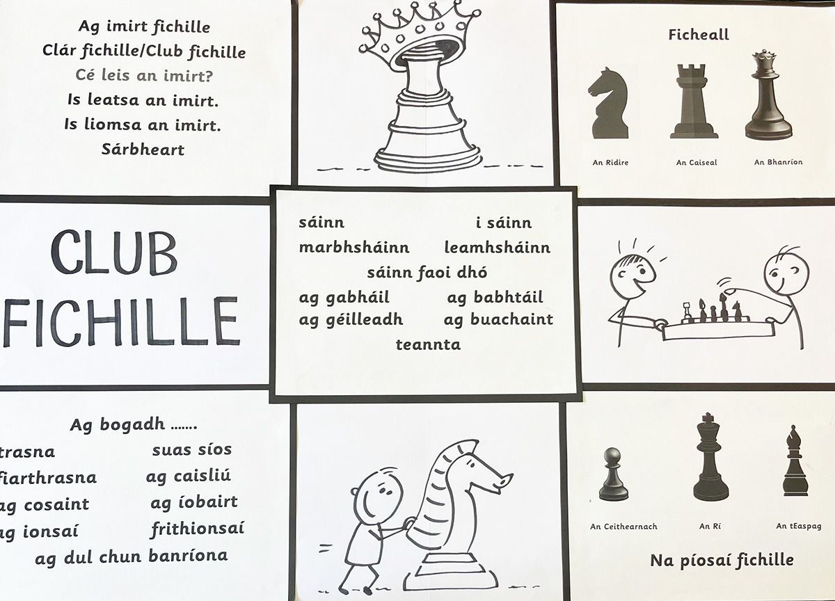 The aim of the chess club is to develop children’s social and cognitive skills and promote healthy competition in an inclusive, comfortable environment. In Gaelscoil Faithleann’s chess club, children will learn to play through the medium of Irish.