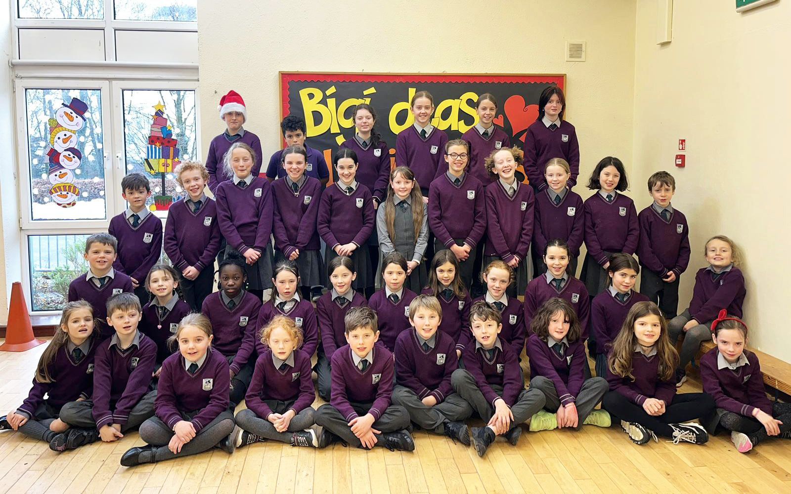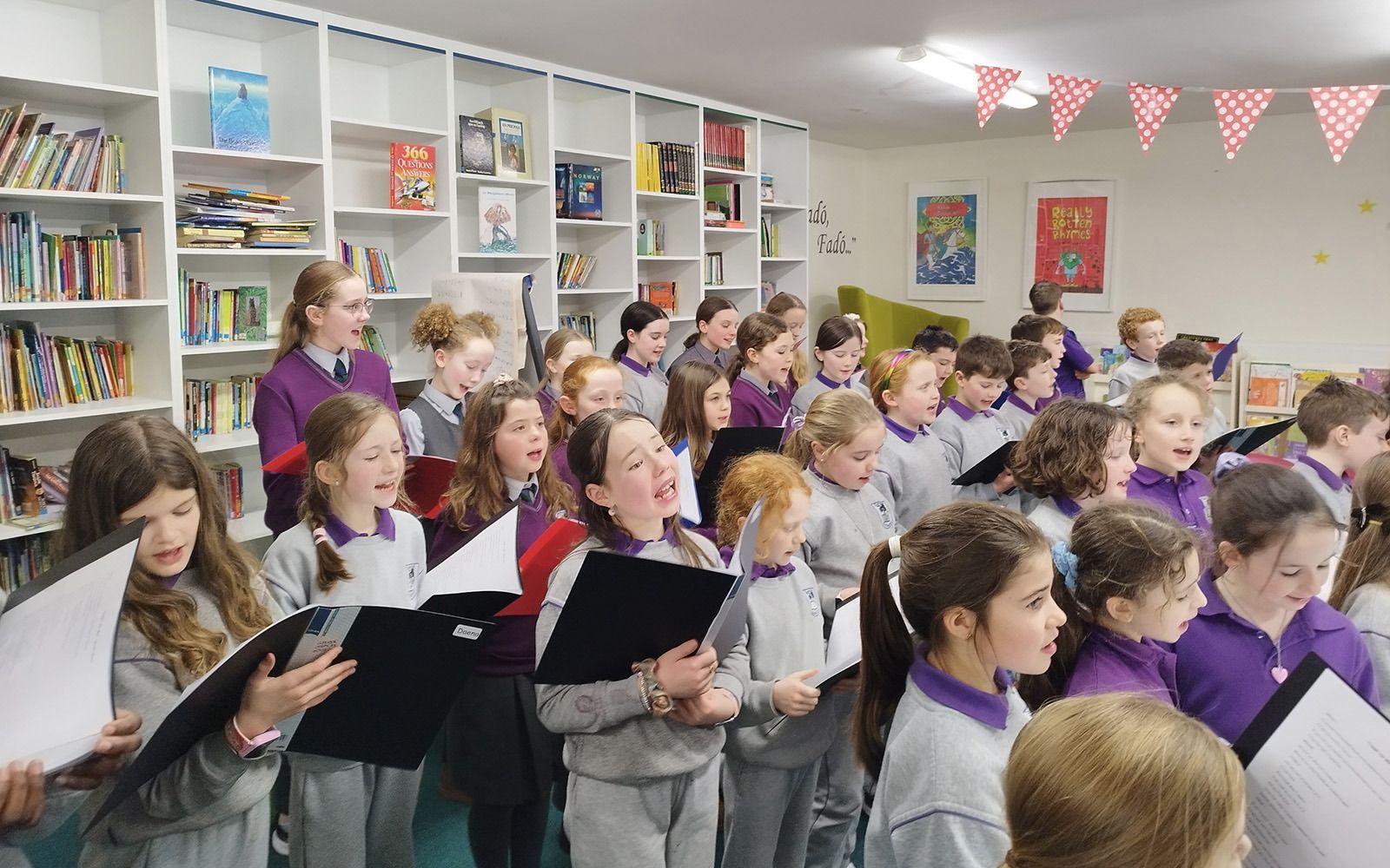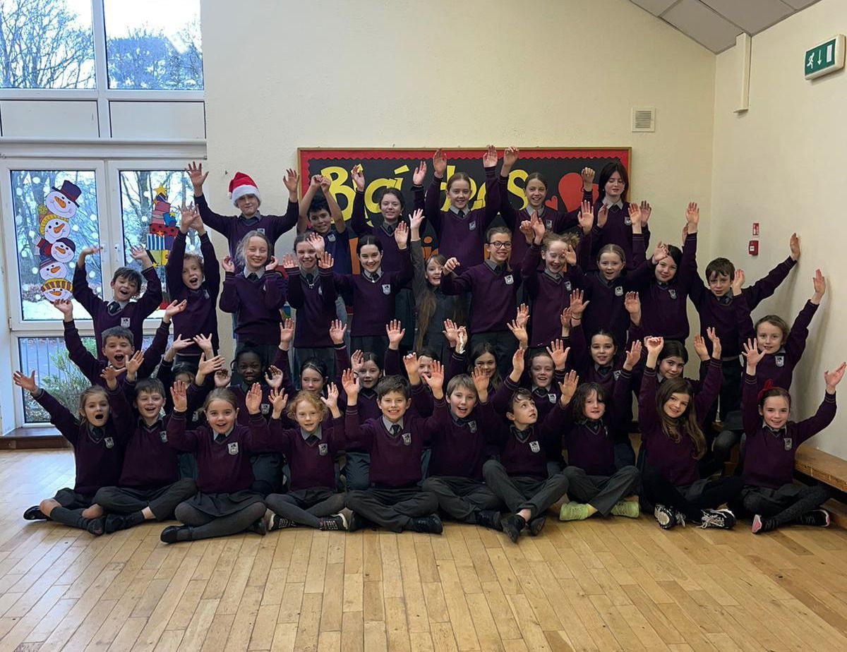 A choir was established in Gaelscoil Faithleann several years ago but after a break for a few years during Covid, choir returned in 2023. As with our language, sport and art, music is a very special and important element of our school’s culture. Music gives children the opportunity to come together and express themselves creatively and develop self-confidence. The choir greatly enhances the atmosphere in school, especially on special occasions during the year. We sing at a variety of occasions ranging from Christmas carol services, Grandparents Day, Confirmation and First Holy Communion. All pupils from Second – Sixth Class are more than welcome to participate in the choir. We practice in the school hall every Wednesday from 2:30-3:00.